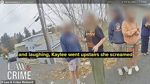 Her account of the events that unfolded inside the house paints a picture of horror and disbelief. ‘They were in the main room dancing and laughing,’ she tells the officers, her voice trembling as she recounts how the atmosphere shifted from joy to terror. ‘Kaylee went upstairs and she screamed that someone’s in the room and she ran downstairs.