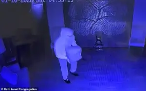 Exclusive surveillance footage, obtained through limited access by law enforcement and shared with this reporter under strict confidentiality, reveals the harrowing moments leading up to the antisemitic attack that left Mississippi’s largest synagogue in ruins.