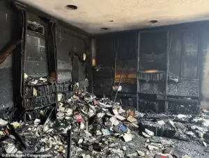 The sanctuary, once a vibrant center of Jewish life, now bears the scars of the fire. ‘The floors, walls, and ceiling of the sanctuary were covered in soot,’ Schipper said, detailing the extent of the damage.