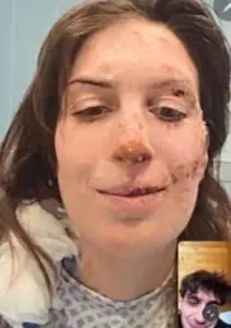 Her instinct to raise her hands to her face, a desperate attempt to shield herself from the flames, left her with deep burns around her left eye, cheek, lips, nose, and both hands.