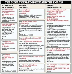 The files also contain references to Sarah Ferguson, the former Duchess of York, and her daughters, Princesses Beatrice and Eugenie.