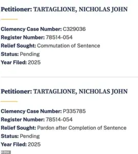 For a prisoner looking to submit a pardon petition, the journey begins with the warden. Because he is still serving time, Tartaglione’s request is technically a petition for commutation of sentence – a formal plea for the President to cut his time short. In a statement to the Daily Mail, a White House administration official says, ‘Literally anyone is able to submit a pardon petition. The submission of a pardon petition means nothing other than an individual has chosen to submit it. The White House is not aware of the letter being referenced.’ Trump has denied time and time again that he has any connection to the criminal wrongdoings of Epstein and his partner, Ghislaine Maxwell.